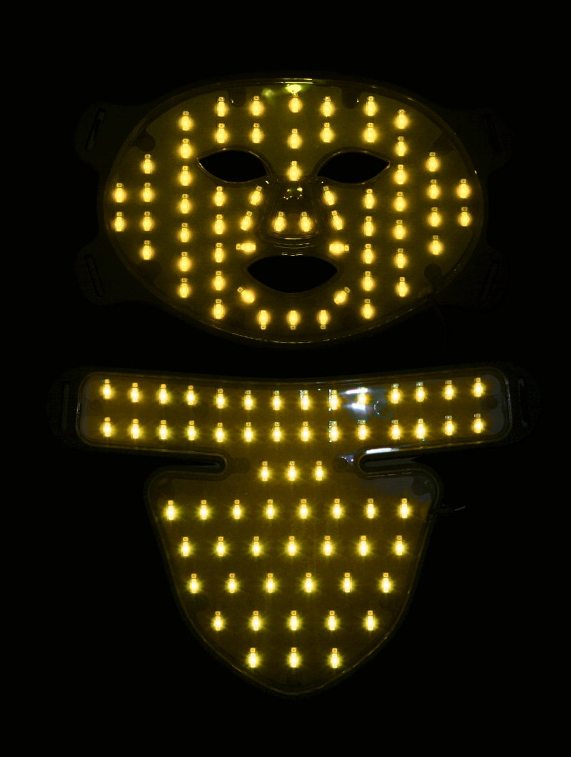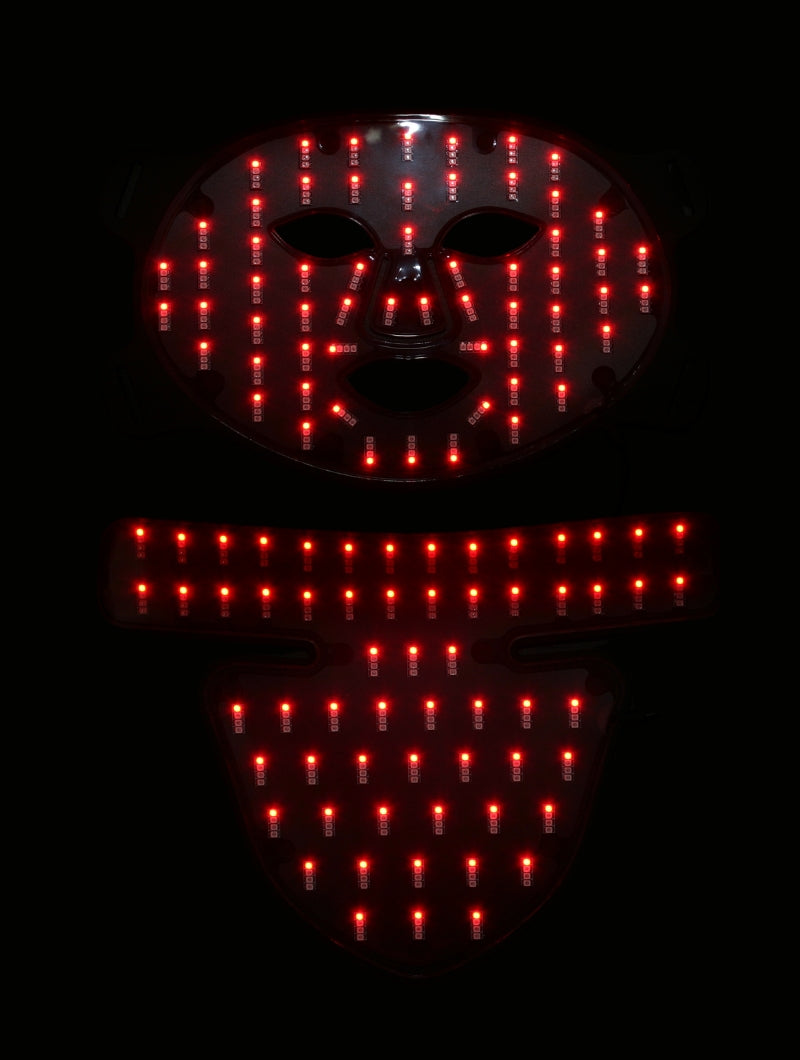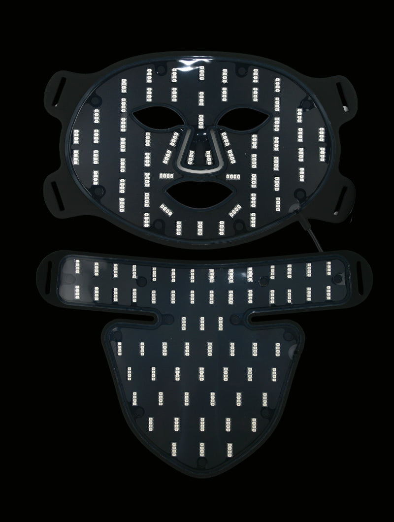 240 LED bulbs for the face and 240 for the neck, delivering a total of 480 high-intensity lights for maximum rejuvenation.